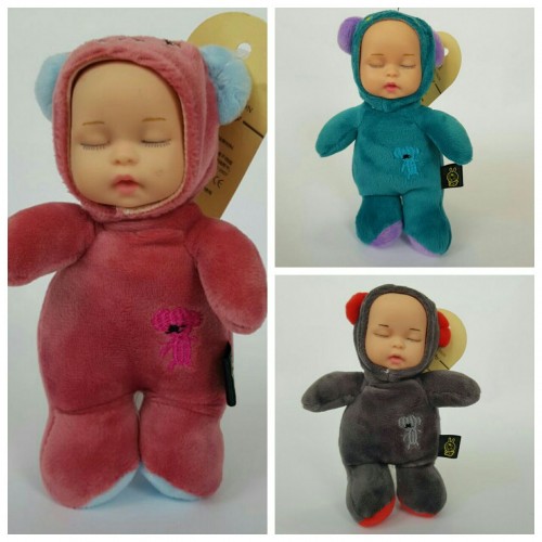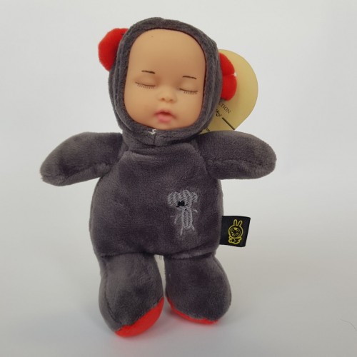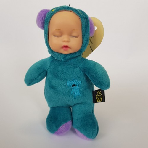 М'який плюшевий пупсик сплюха в костюмі ведмежати, маленький 14см.