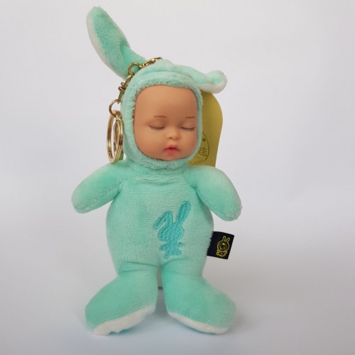 М'який плюшевий пупсик сплюха в костюмі зайчика, маленький 16см.